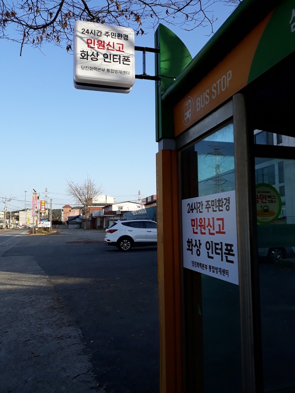 2018년 11월 19일 화력발전소 주변지역 주민들이 자연발화나 비산먼지 등으로 인해 불편함을 느낄때 지역주민 누구나 당진화력본부 통합방재센터로 민원신고를 할 수 있도록 교로3리, 당진화력발전소 민간환경감시센터 앞 정류장에 24시간 민원신고 화상 인터폰을 개통하였다.